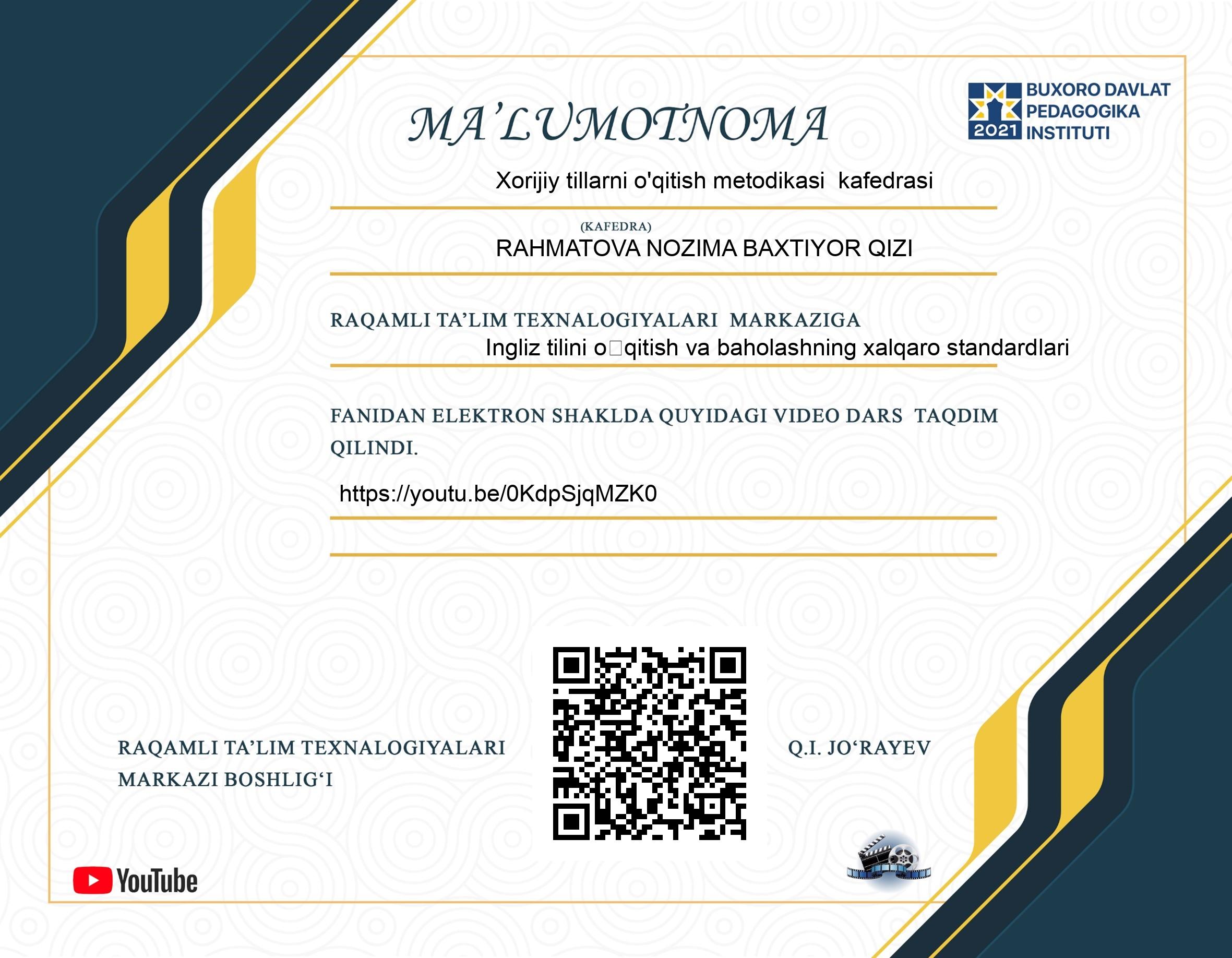 RAHMATOVA NOZIMA BAXTIYOR QIZI