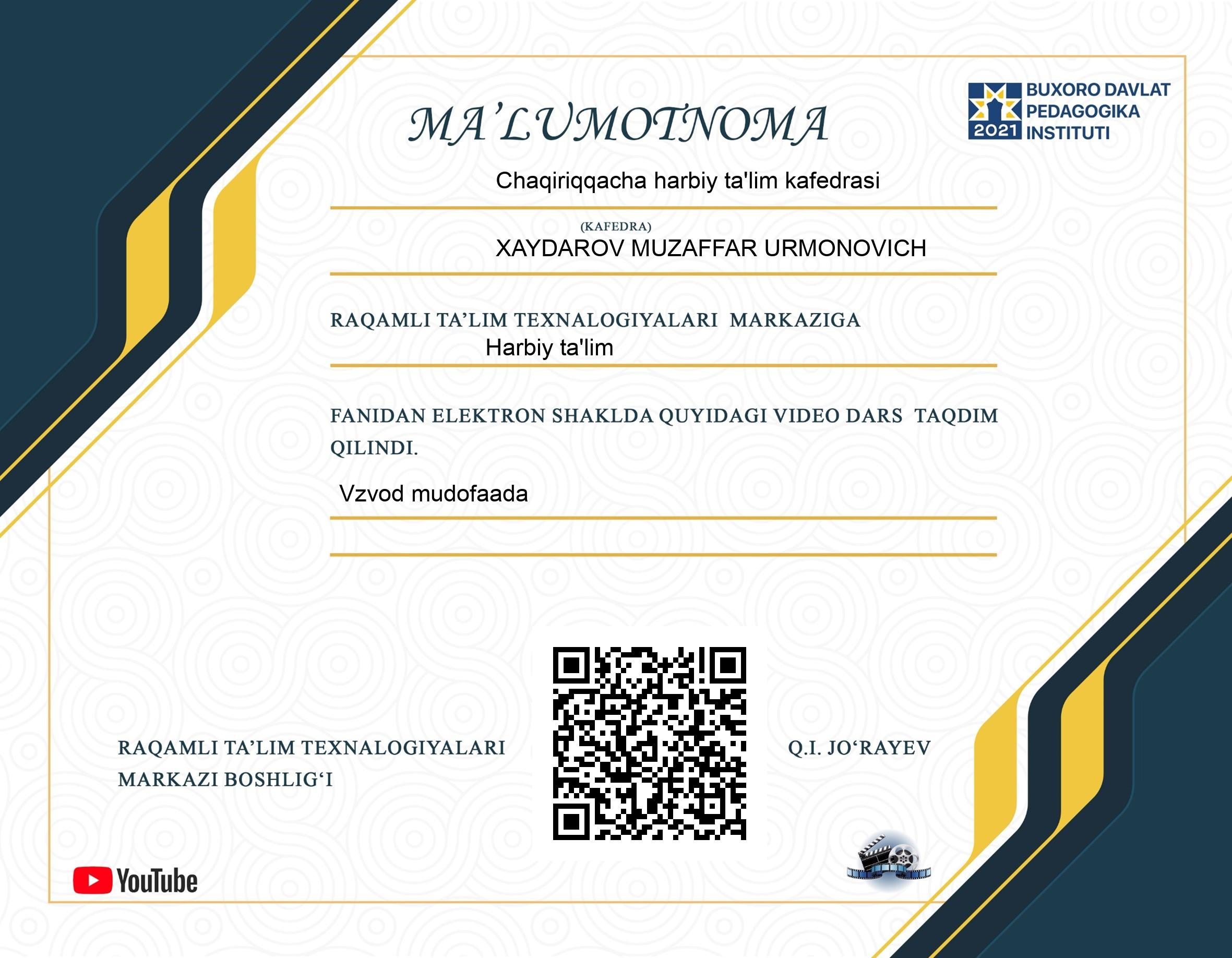 Buxoro davlat pedagogika instituti Chaqiriqqacha harbiy ta'lim kafedrasi